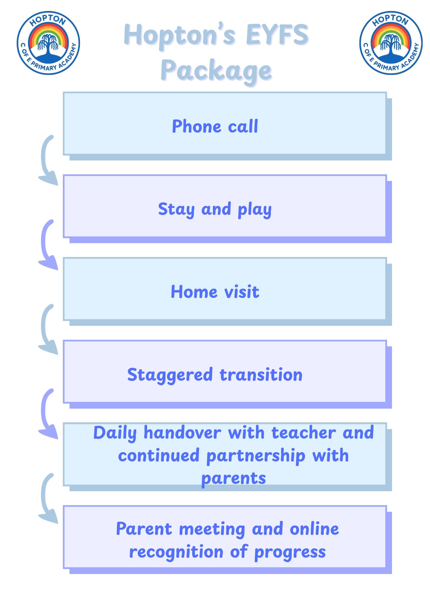 At Hopton C of E Primary Academy, we welcome children from the term after their third birthday and have nursery places which are funded. As a school, we will top up the funding to 30 hours to offer free places to your child if your child attends our setting for the first 15 hours funded.